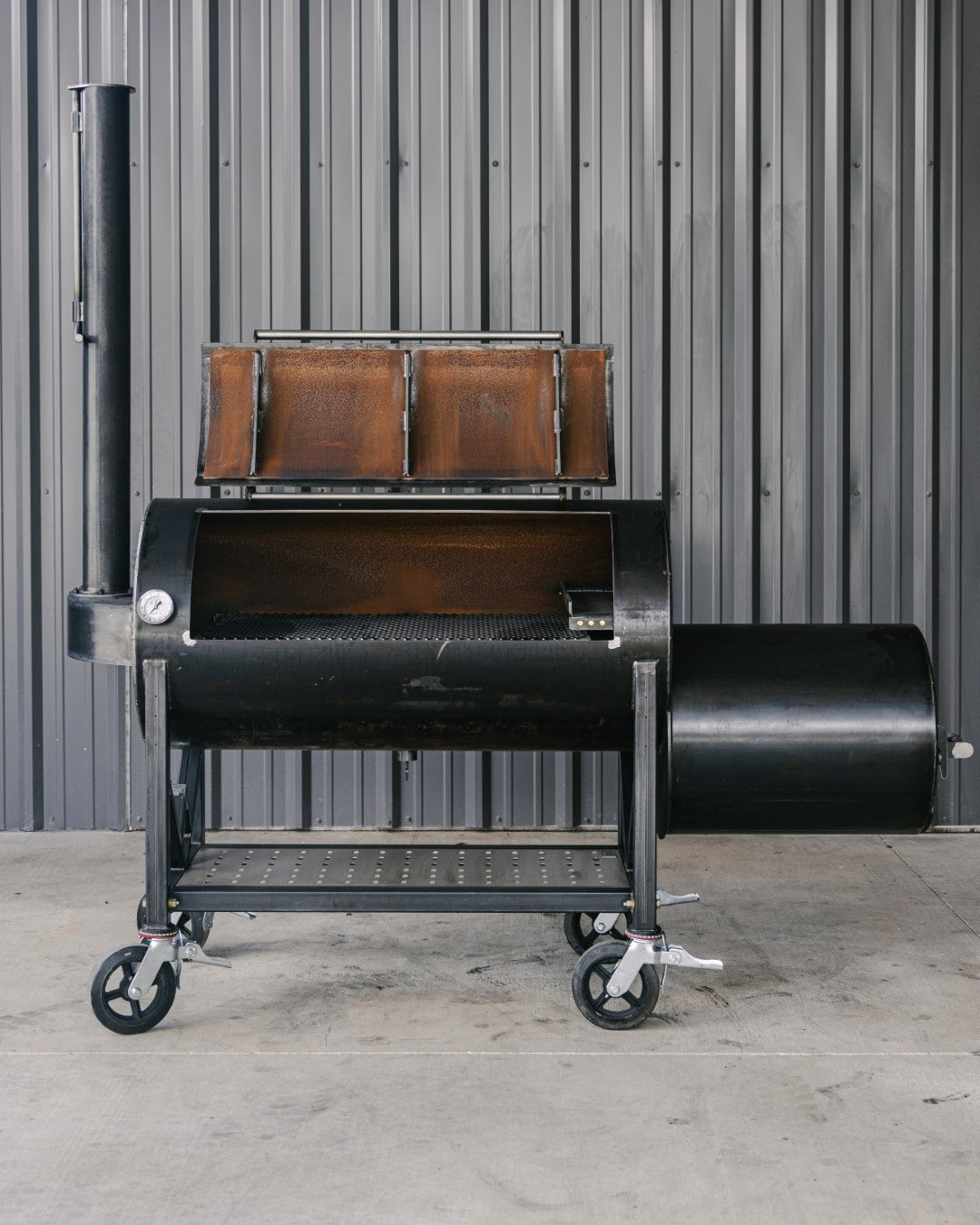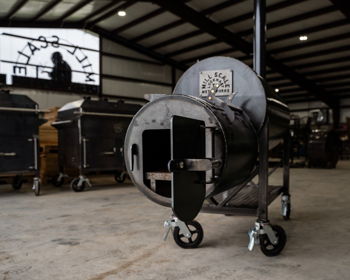 The Mill Scale 94 is a traditional offset barbecue smoker designed for backyard use.  We start by sourcing quality steel and industrial-grade hardware. We focus on intentional design, using multiple function components and details that the user will notice over time. For this design, we applied everything that we learned from building smokers on a commercial level: keep it simple yet sturdy, and make it enjoyable to use. This smoker maintains consistent temperature, so folks can expect consistent results.