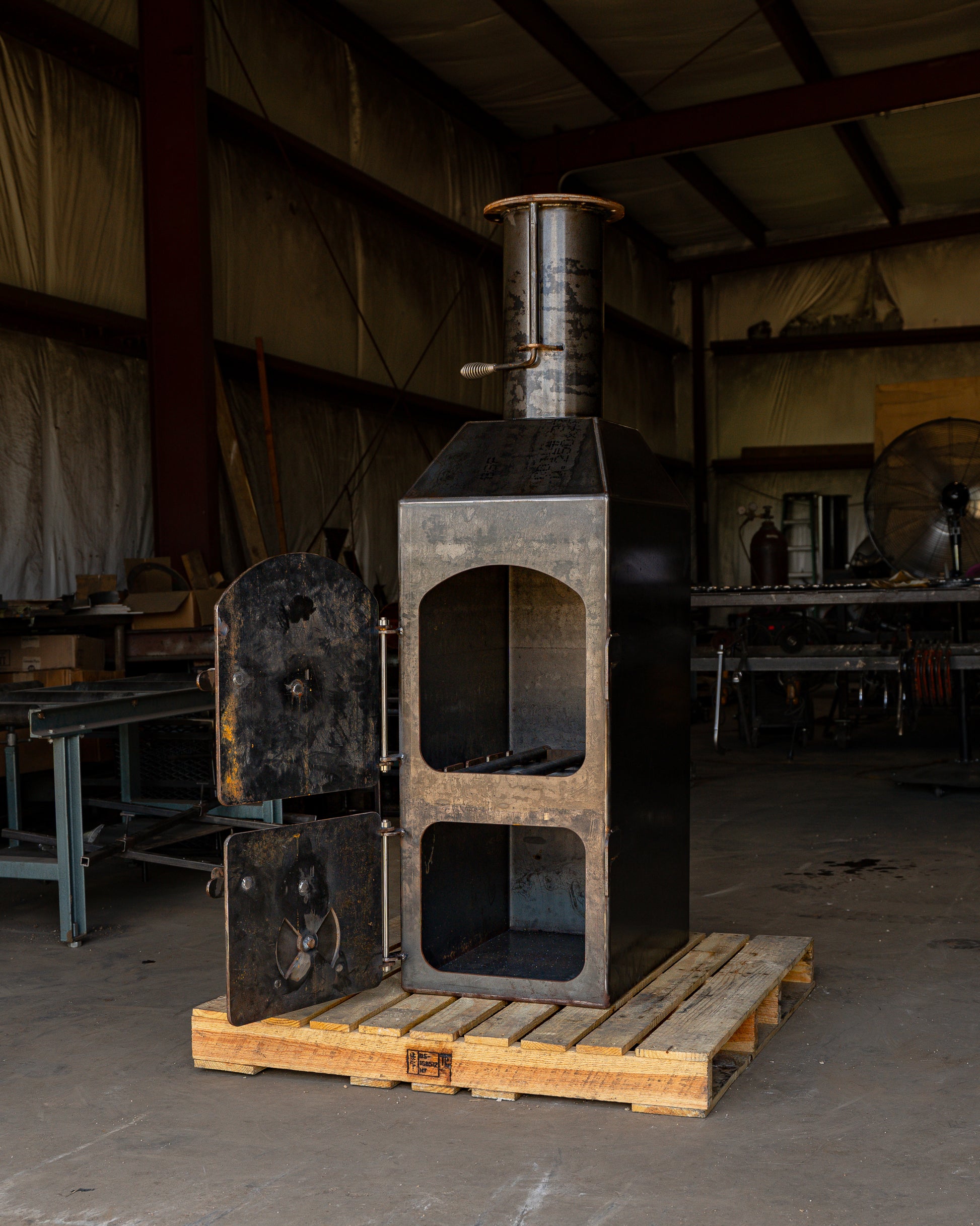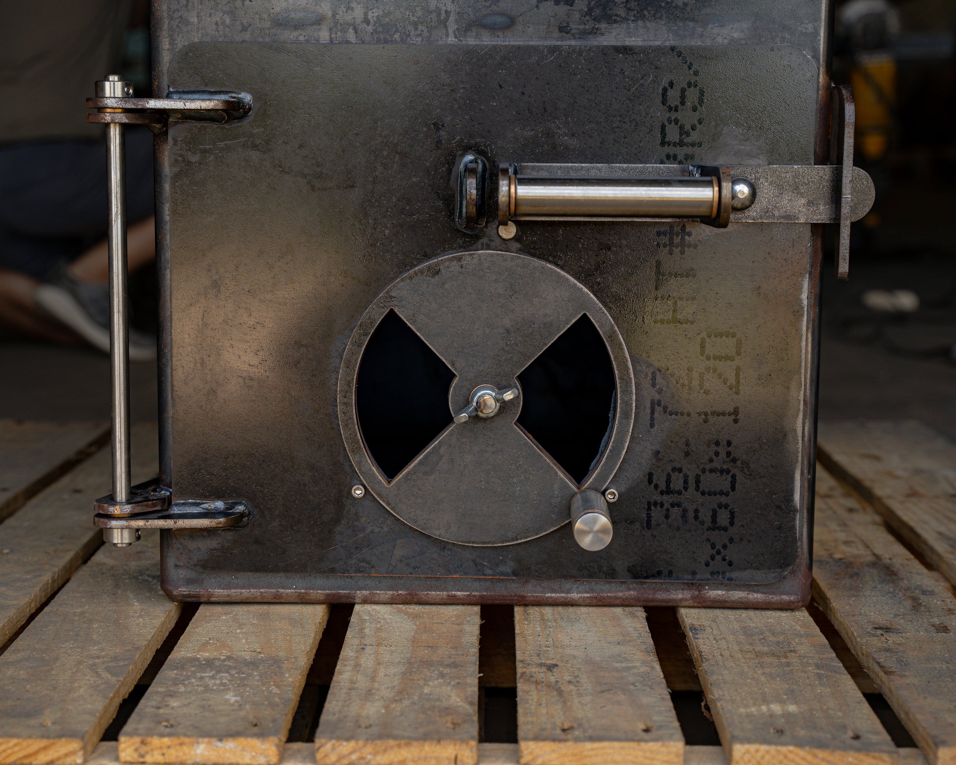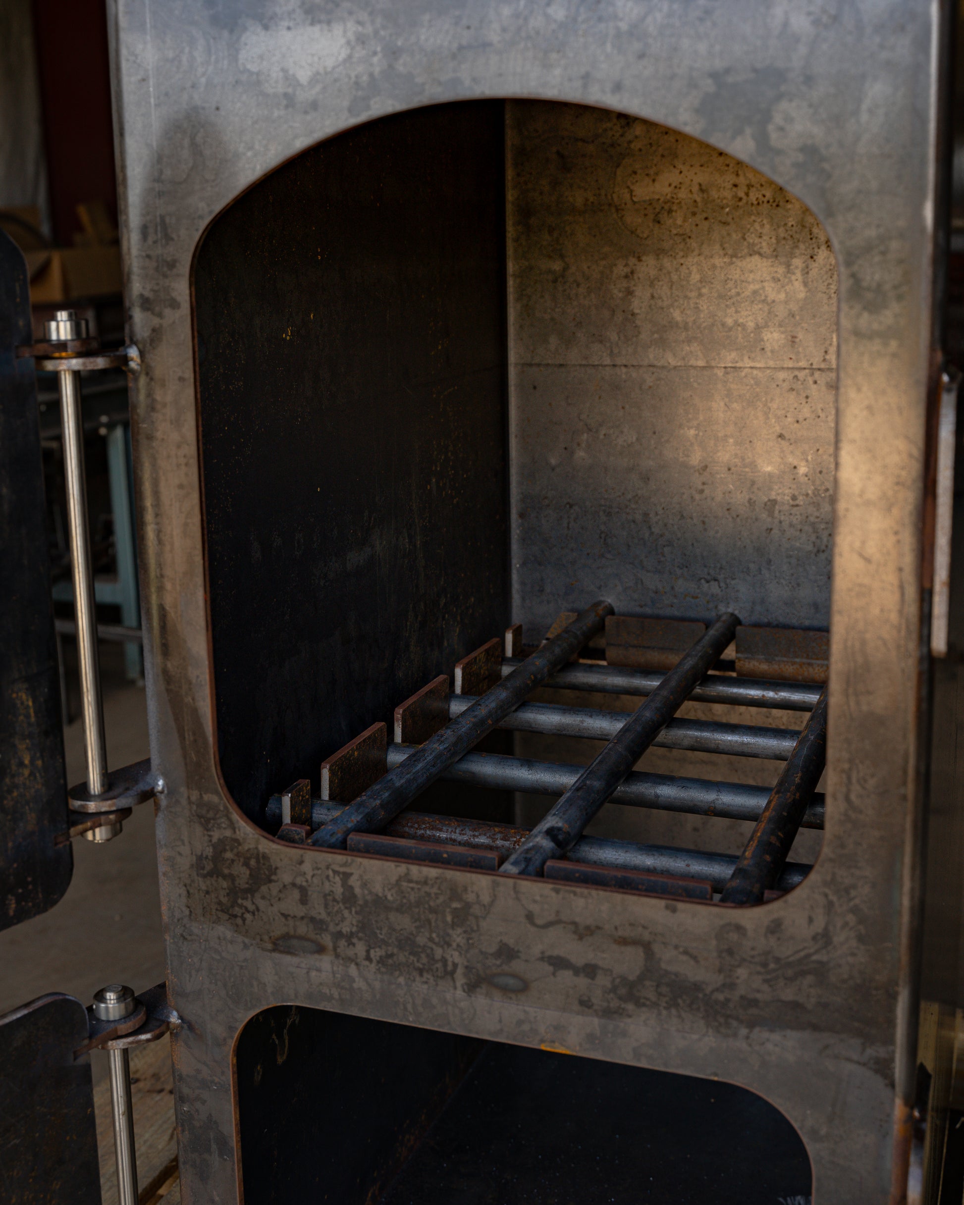 - 1/4" steel body, 3/8" doors, 1" round bar fire grid.