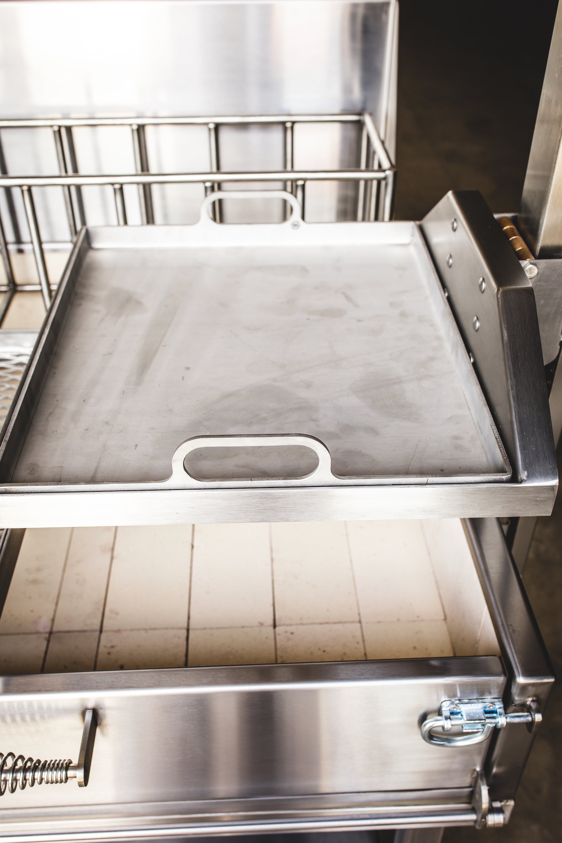 - Stainless Steel Plancha - The plancha tray is a versatile surface for searing meats, fish, and vegetables. A total of 2 planchas can fit on El Jefe.