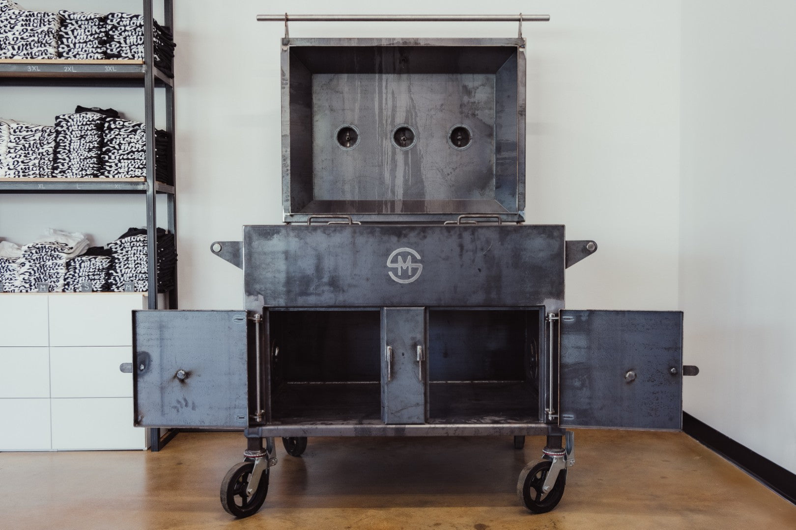 The Hot Box is a direct heat cooker, perfect for a backyard, catering, or restaurant environment. Two large fire box doors give the user plenty of access to work the coals. It is designed to be easily cleaned-out. We offer 3 different grate options for a variety of proteins and techniques. This unit is built on sturdy 8" locking casters, and is constructed out of mild steel.