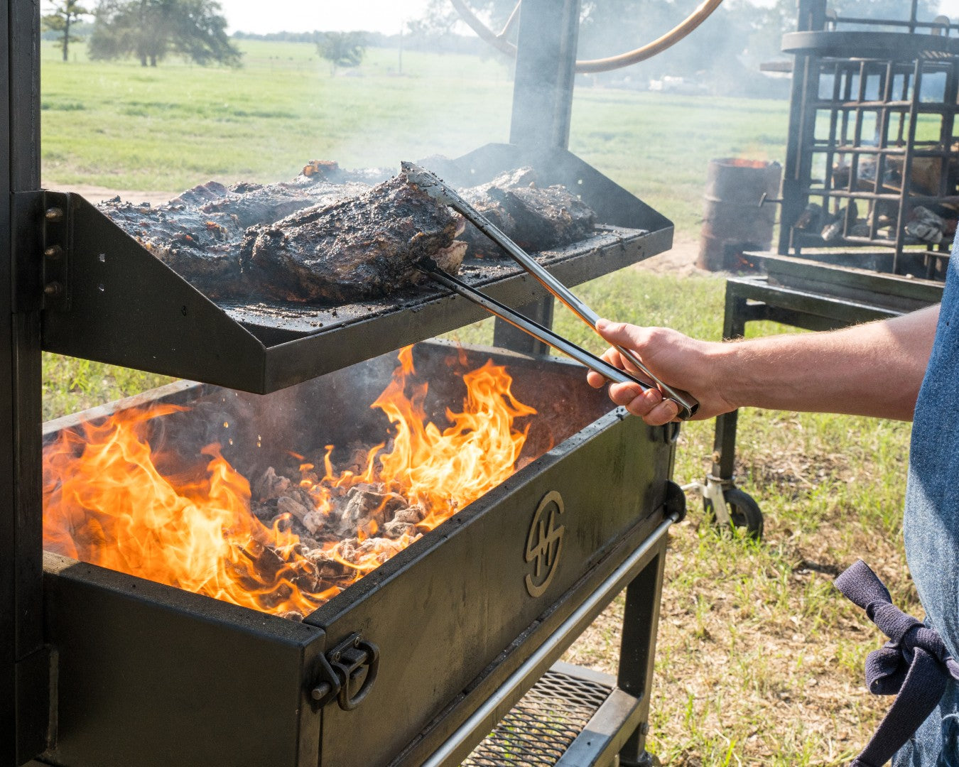 - V-Grate - Directs the oils and juices from cooking meat into a catchment pan. A total of 2 v-grates can fit on the Santa Maria.