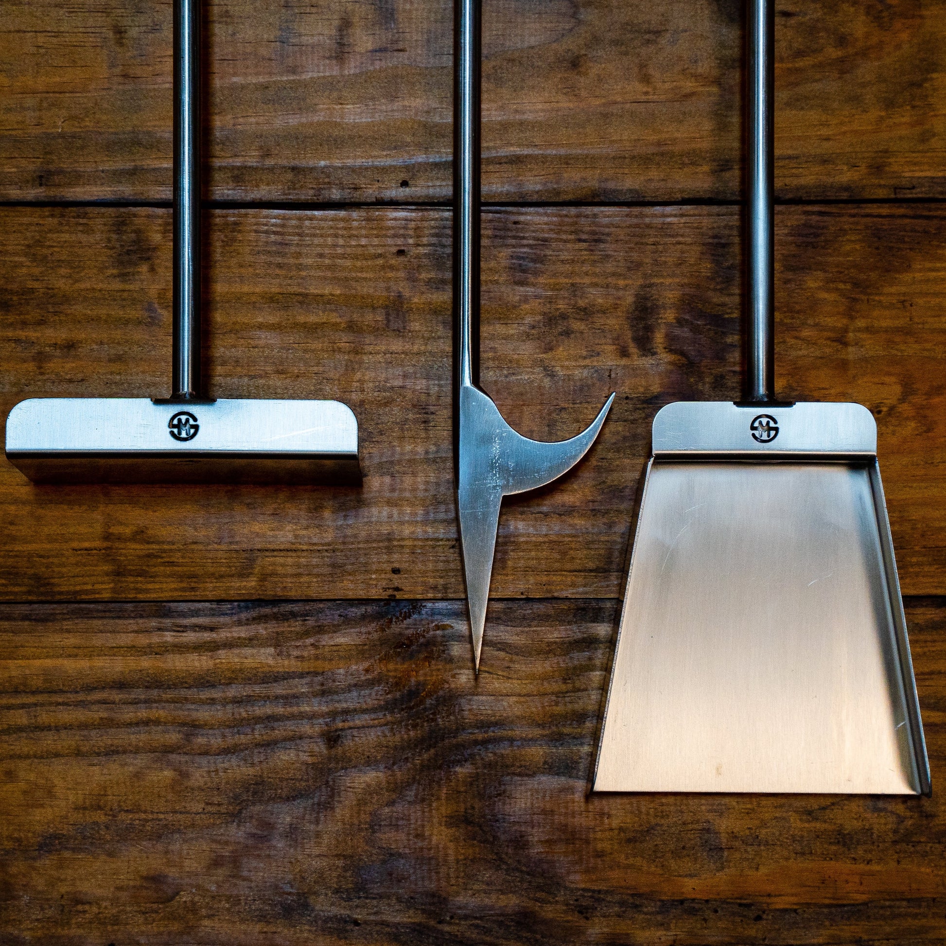 Poker, Rake, Shovel: all constructed out of Stainless Steel.