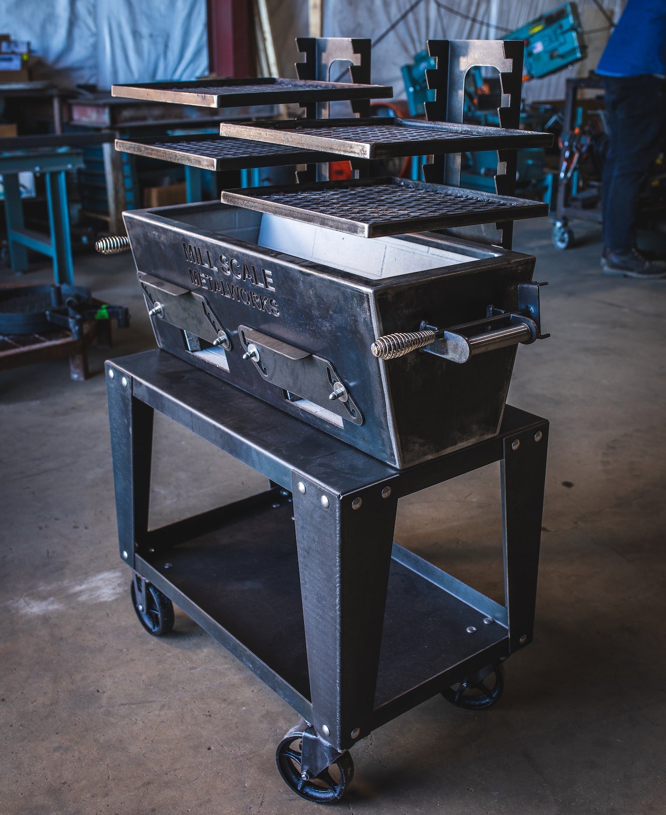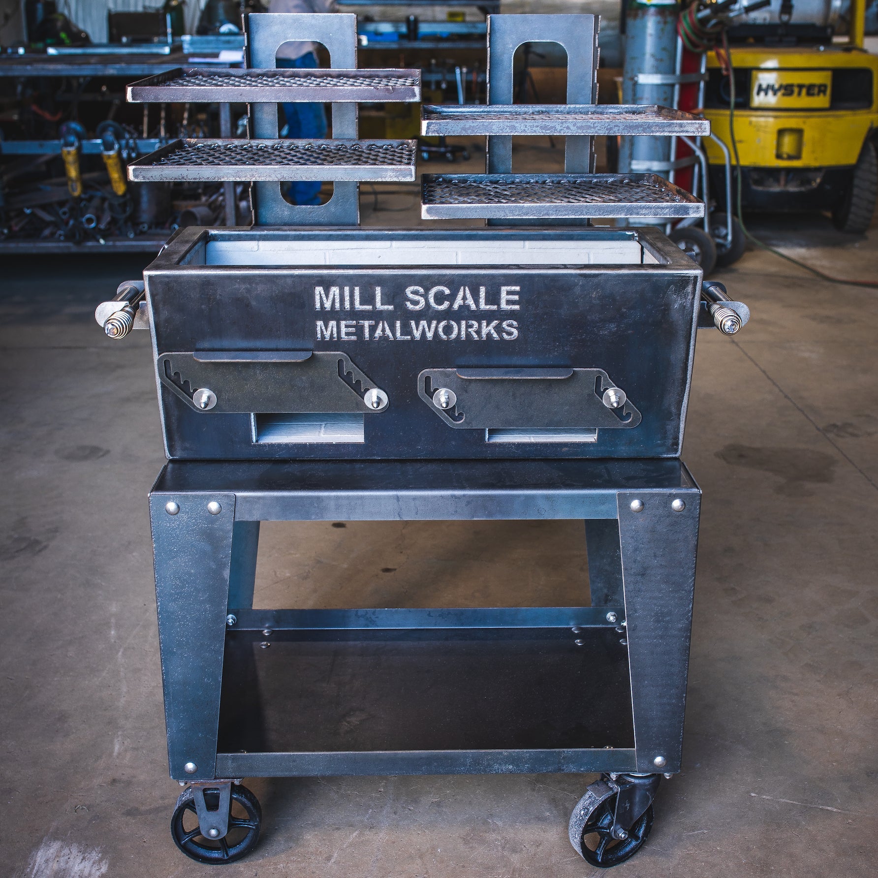Now offering the Yakitori cart, built specifically for all 3 Yakitori grills (I, II, III). It raises the Yakitori to a standard cooking height of approximately 36" from the ground to the top of the charcoal basin. Built on sturdy casters with a full lower shelf, this cart allows the Yakitori to be maneuvered around your ideal outdoor cooking space. It is constructed out of 11 gauge mild steel, and the Yakitori is fastened to the cart with bolts.*