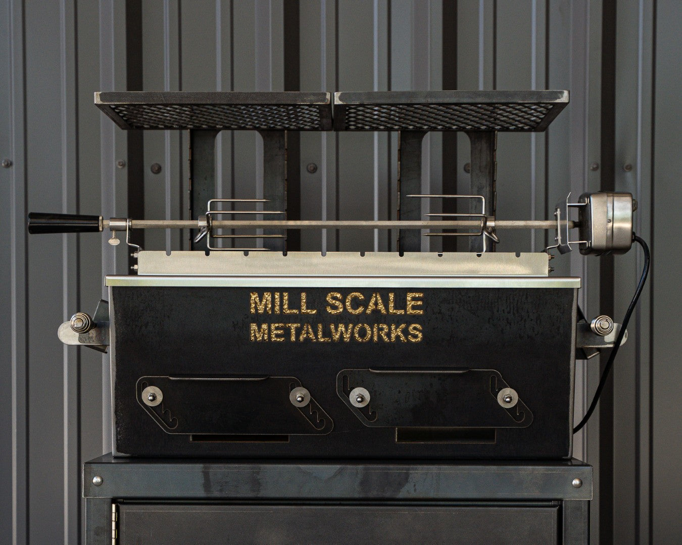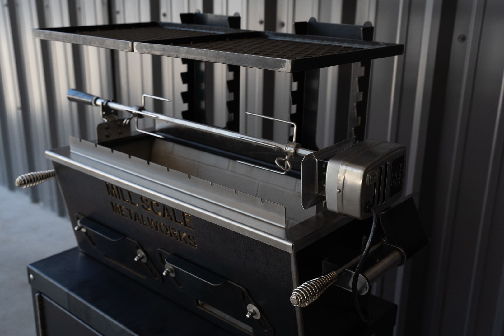 The Yakitori Rail is a stainless steel removable add-on that accommodates Skewers and a Rotisserie attachment. Available for the Yakitori I, II and III.