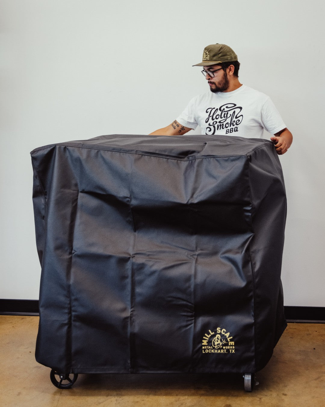 This cover was custom-designed to fit all 4 sizes of our Yakitori Grills (Yakitori I, II, III, IV). Each cover is cut, sewn, and embroidered to-order. Cover orders may have a lead-time of approximately 4 weeks, and will ship directly from our cover manufacturer.