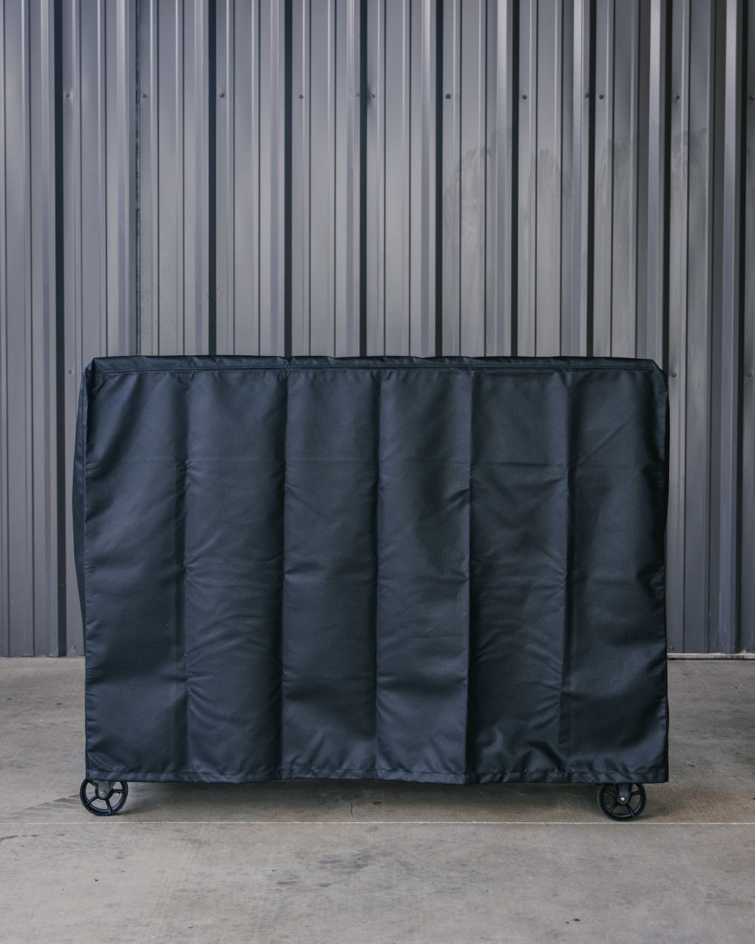 The heavyweight black canvas has a plastic PVC backing with a waterproof coating, making it extremely durable and resilient. It is also mold and UV resistant.